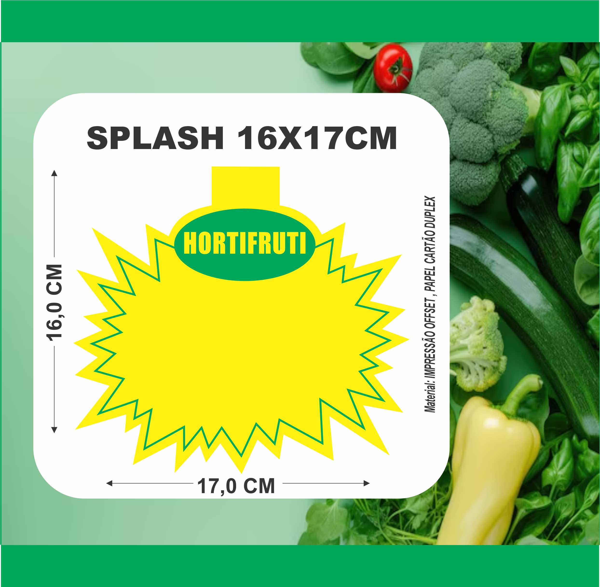 Cartaz Splash Hortifruti 16x17cm - Impresso em papel Cartão Duplex